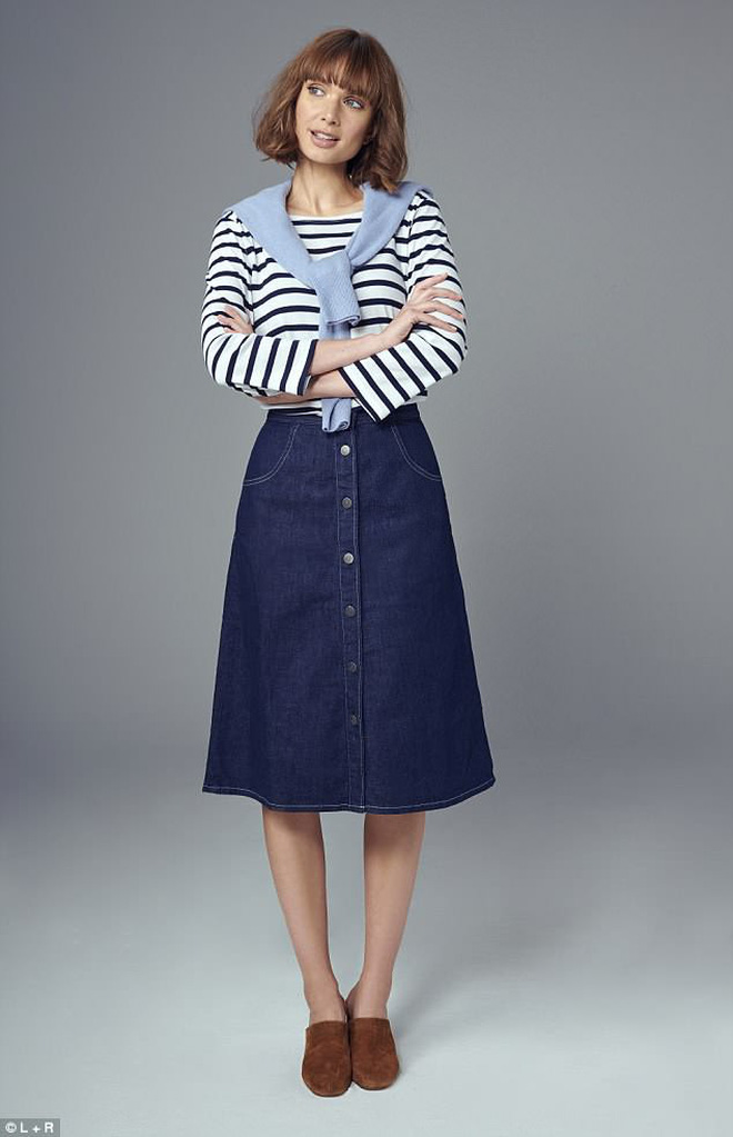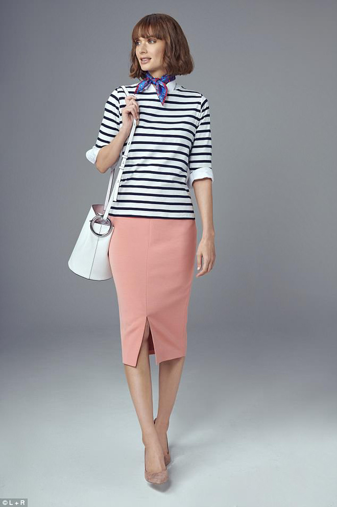 Đương nhiên, sẽ không có chiếc áo nào phù hợp mặc thường ngày hơn là áo thun kẻ. Nếu bạn là cô nàng ưa lối ăn mặc cổ điển và kín đáo, bạn hoàn toàn có thể mix chiếc áo kẻ với chân váy midi dài quá gối. Cách mặc này tạo cảm giác nhẹ nhàng và rất nữ tính. Chú ý, nếu bạn muốn nhìn mình trông cao ráo gọn gàng thì hãy sơvin áo nhé!