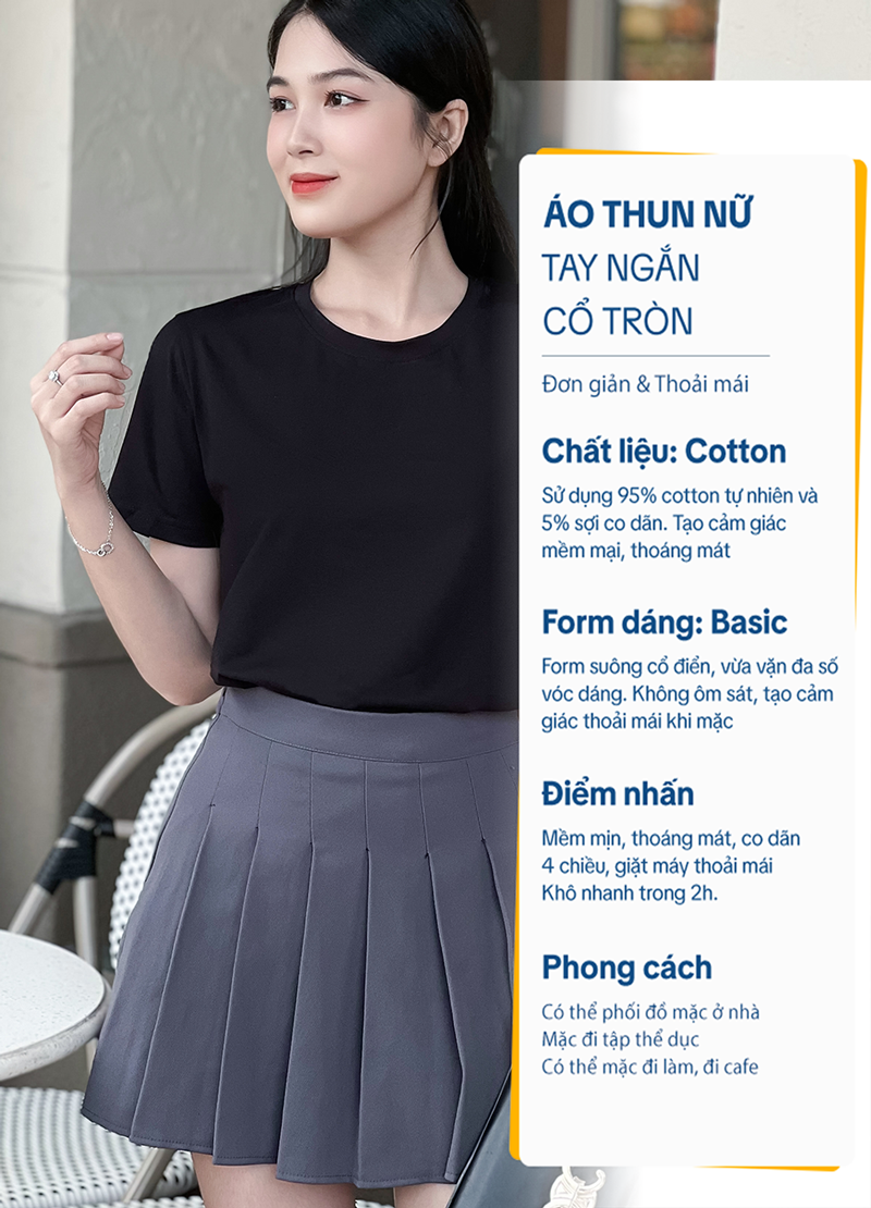 Áo thun thời trang, không pha Ni-Long tạo cảm giác mềm mịn trên da, thoáng mát khi mặc