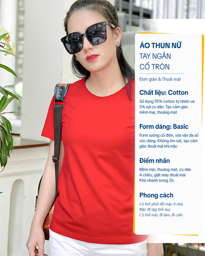 Áo thun thời trang, không pha Ni-Long tạo cảm giác mềm mịn trên da, thoáng mát khi mặc