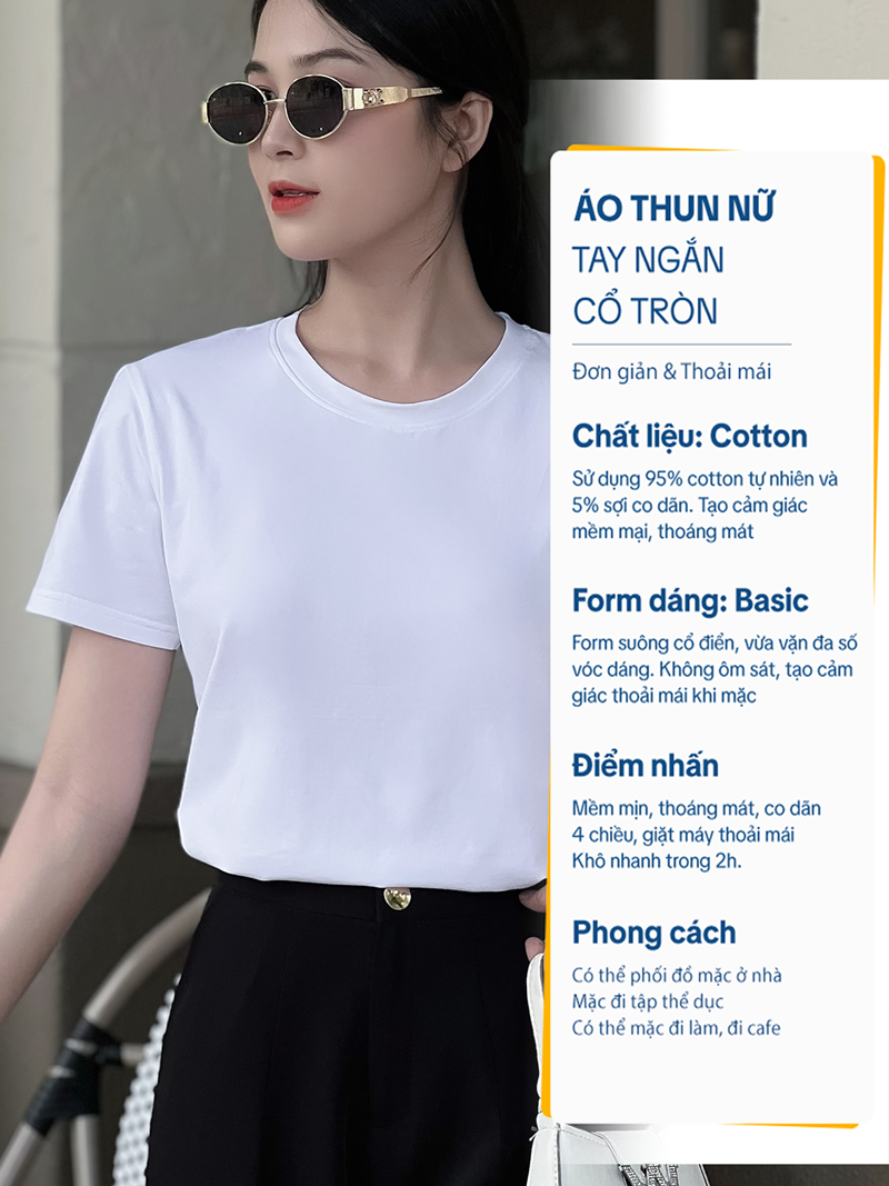 Áo thun thời trang, không pha Ni-Long tạo cảm giác mềm mịn trên da, thoáng mát khi mặc