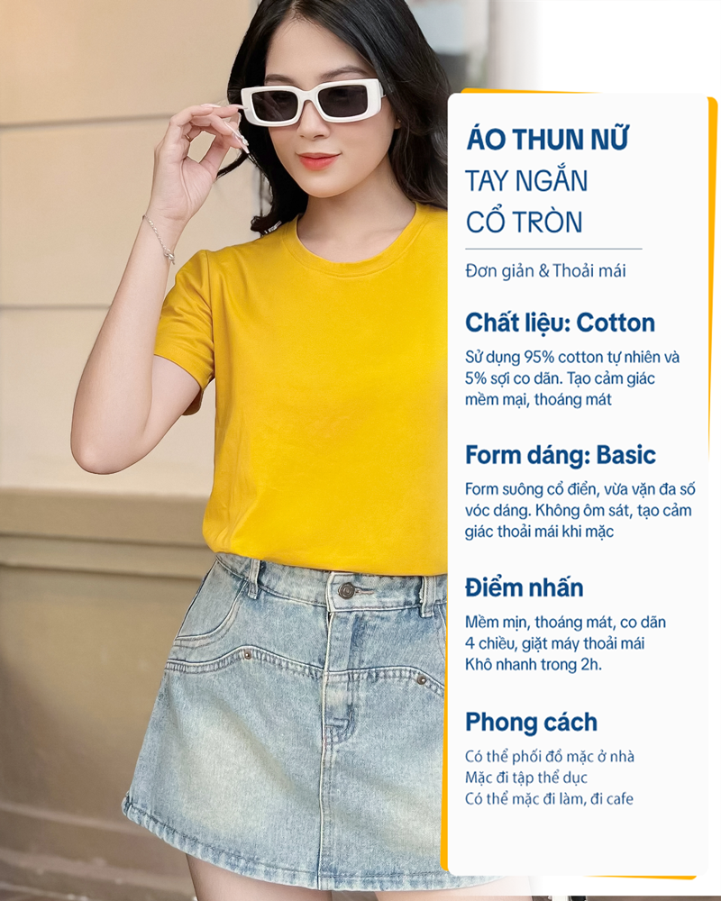 Áo thun thời trang, không pha Ni-Long tạo cảm giác mềm mịn trên da, thoáng mát khi mặc
