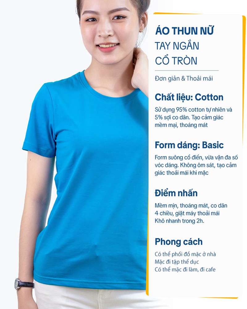 Áo thun cotton nữ cổ tròn màu Xanh Coban 12B