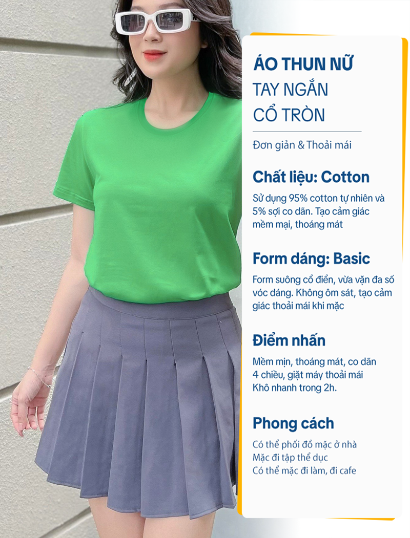 Áo thun thời trang, không pha Ni-Long tạo cảm giác mềm mịn trên da, thoáng mát khi mặc