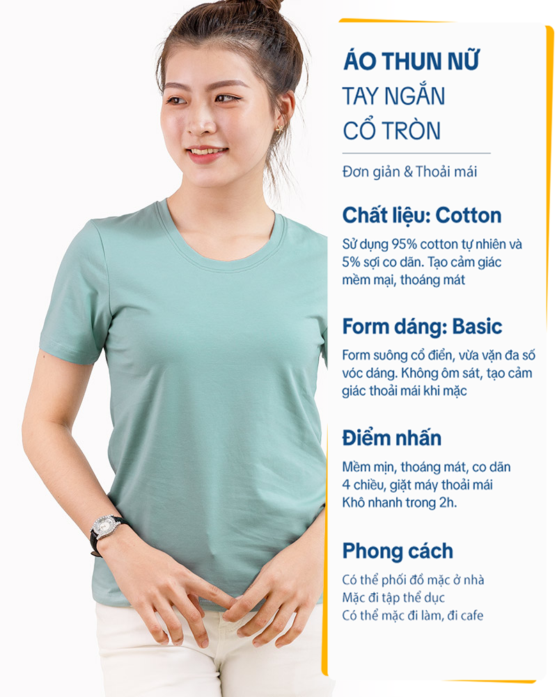 Áo thun thời trang, không pha Ni-Long tạo cảm giác mềm mịn trên da, thoáng mát khi mặc