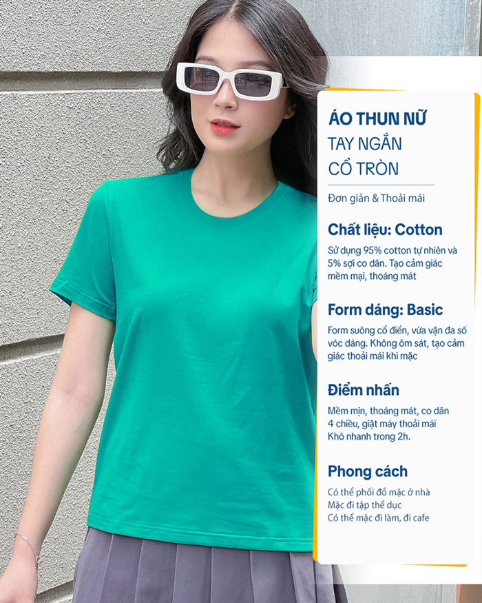 Áo thun thời trang, không pha Ni-Long tạo cảm giác mềm mịn trên da, thoáng mát khi mặc