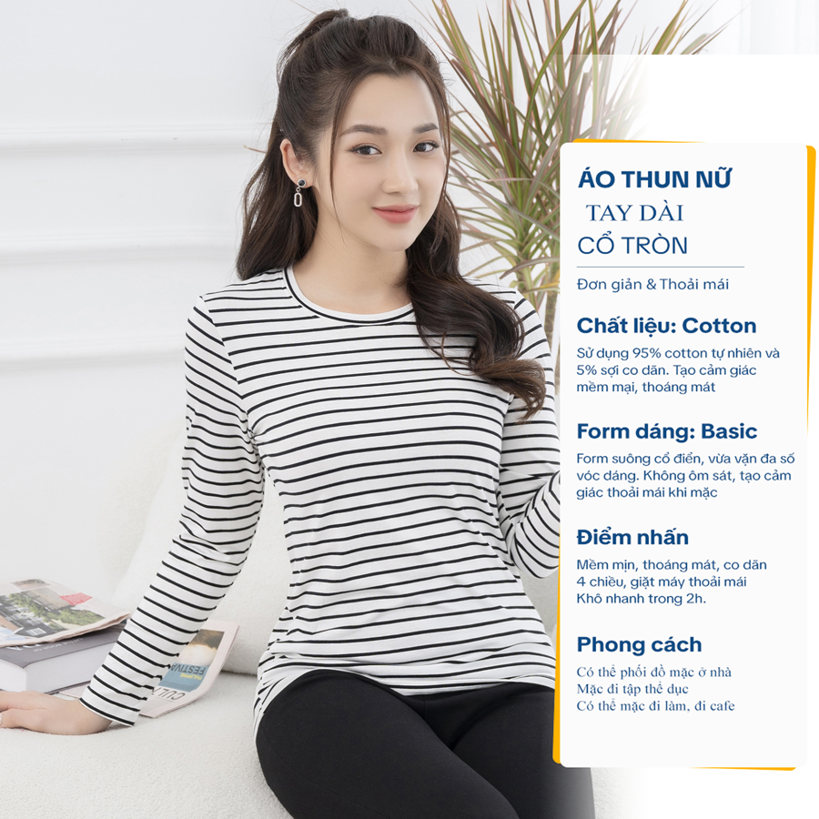 Áo thun cotton nữ cổ tròn tay dài màu Sọc 1 Phân 3Ly Đen Trắng LH19