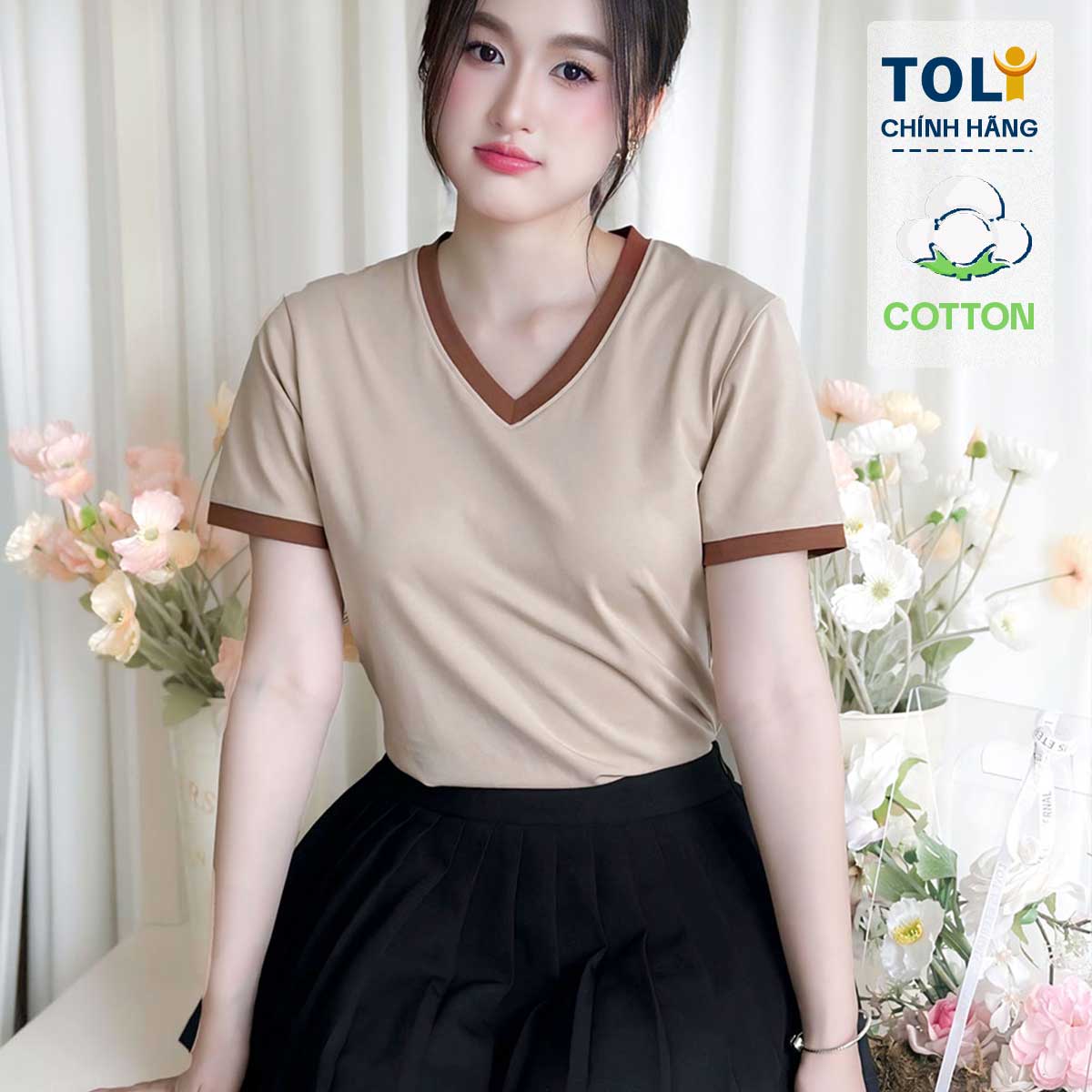Áo thun nữ cổ Tim - Kem Phối - BSA28