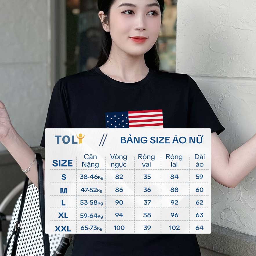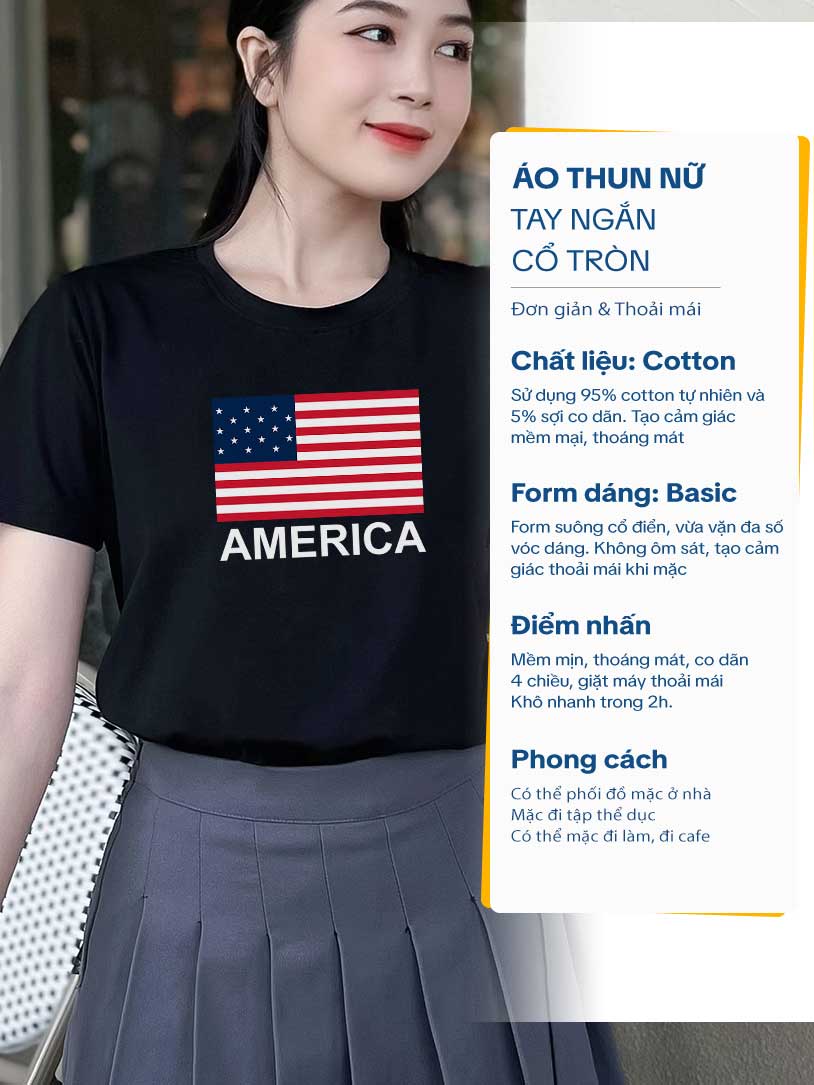 Áo thun nữ tay ngắn-Cổ Tròn-Đen-In America-PSB11-01