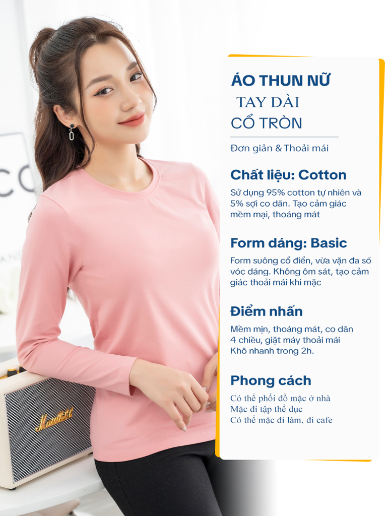 + Áo thun tay dài cổ tròn. Form suông cơ bản phù hợp cho mọi lứa tuổi