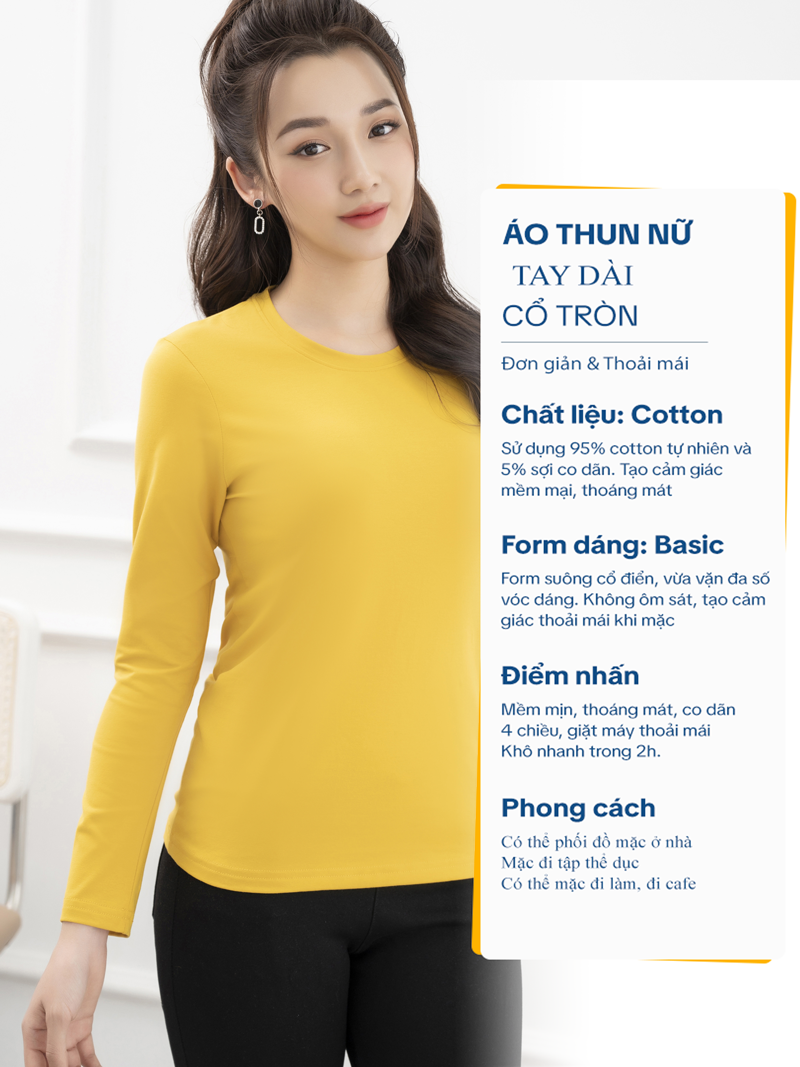 Áo thun nữ tay dài cổ tròn màu Vàng LH07