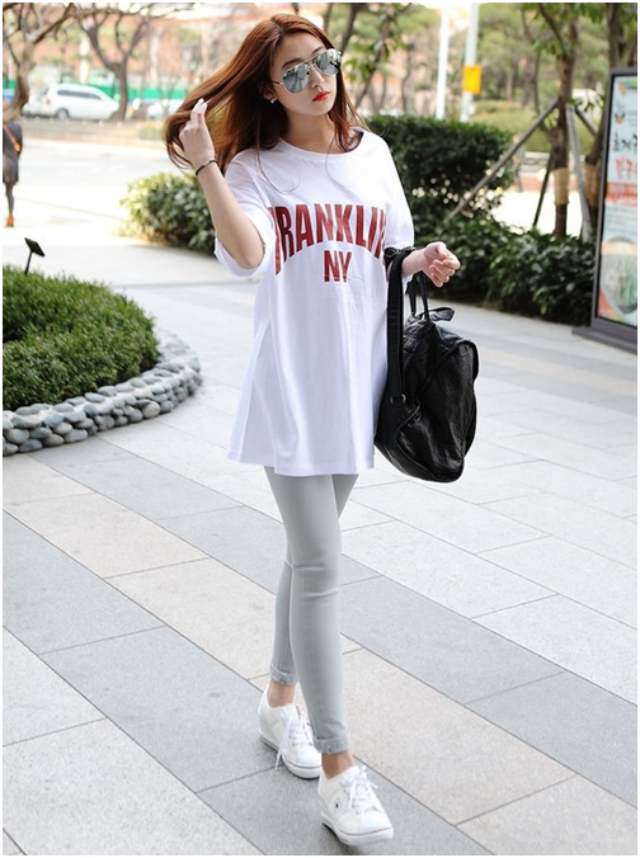 Cho những ngày bận rộn và những buổi sáng vội vàng, một chiếc quần legging và giày thể thao sẽ giúp bạn di chuyển thoải mái. Áo thun dáng dài form rộng giúp che bớt phần nhạy cảm mà chiếc quần legging tạo ra.