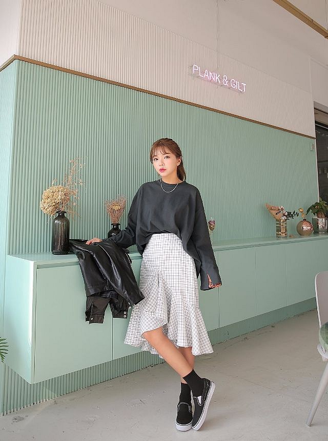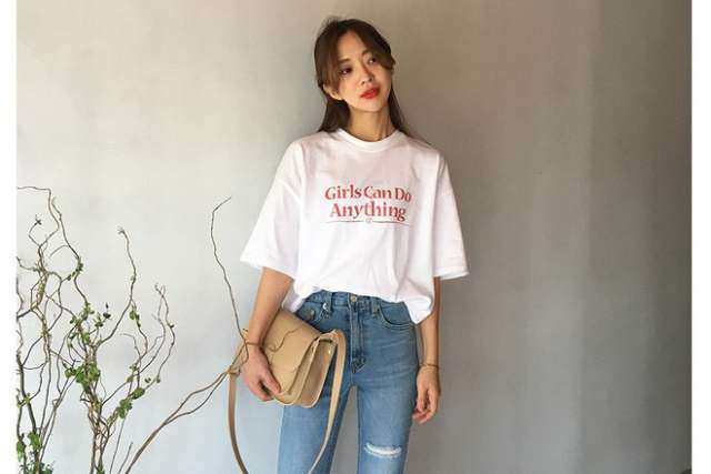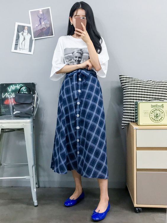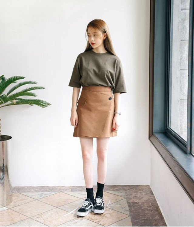 Một cách kết hợp áo thun dáng suông đáng yêu khác là với chân váy chữ A. Cách mặc này có thể trẻ hóa bạn một cách ngoạn mục đấy.