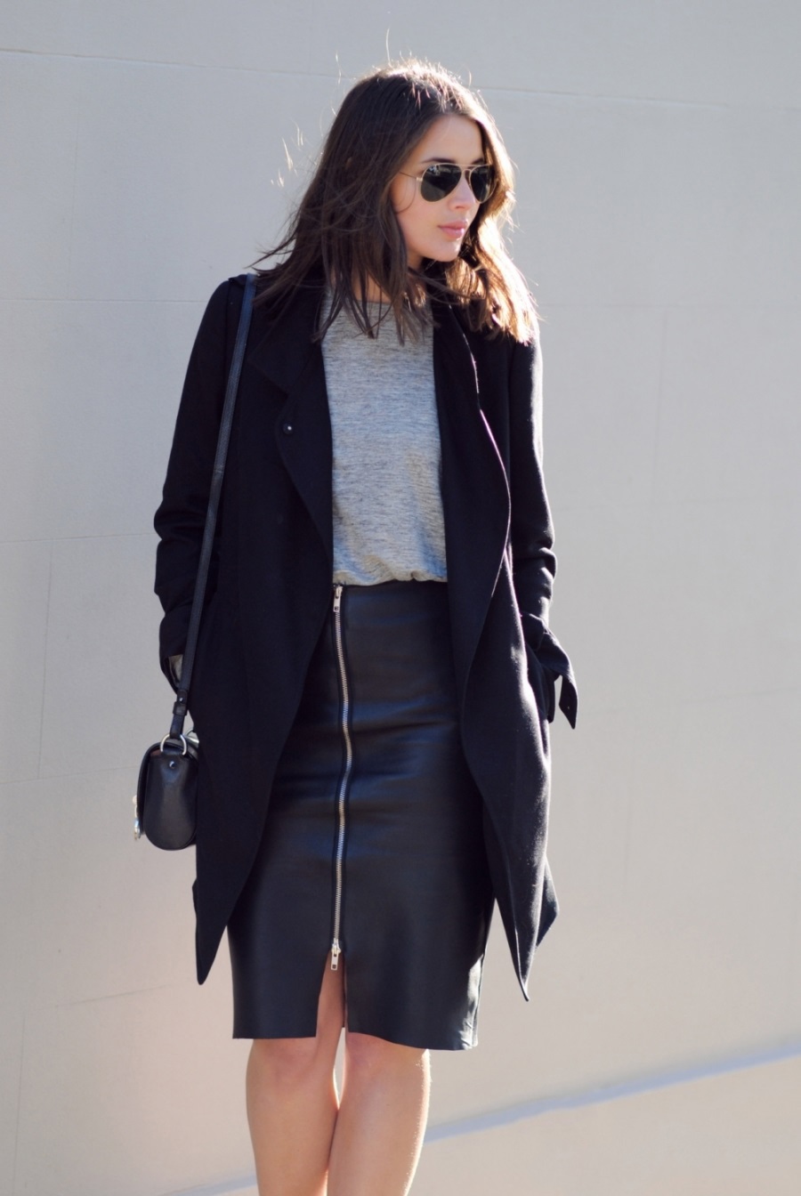 Kết hợp chân váy bút chì vải da