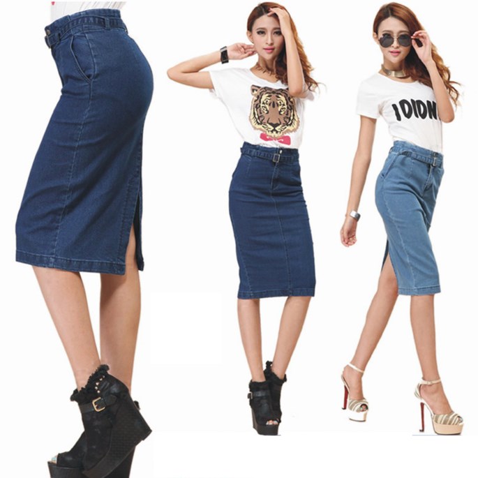 Kết hợp chân váy bút chì vải jeans - kaki