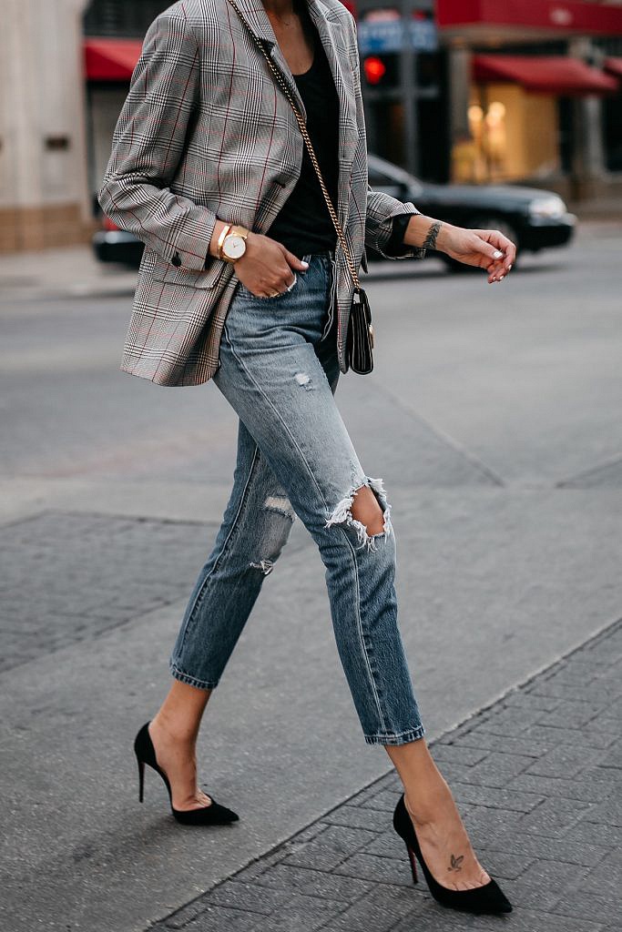 Cách phối đồ với áo khoác blazer kẻ – mặc với đầm ngủ